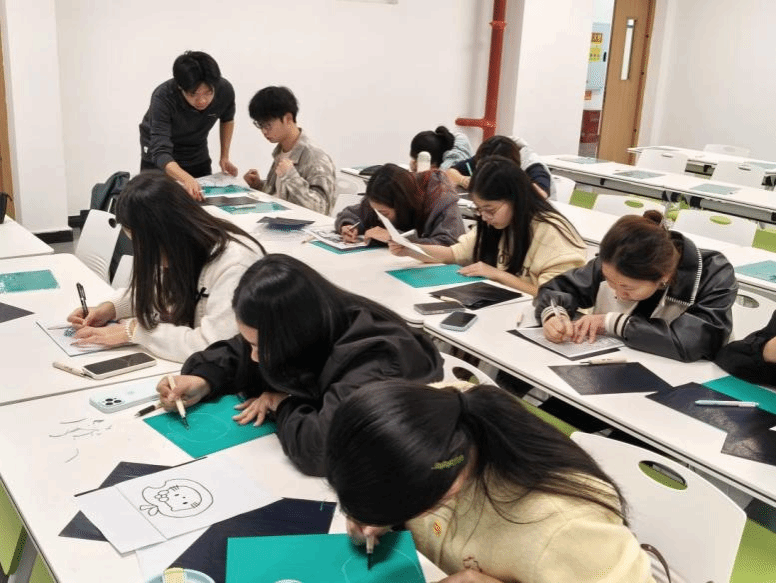 活动策划人详细介绍胶板特性、刀具安全使用规范及阴刻、阳刻技法,演示画稿转印操作要点,并提供漫画IP、自然物语、文字图案、抽象构成四大创作方向,为后续实践筑牢理论与技艺基础。活动伊始,青年教师施老师围绕“刻印同心・传承薪火”主题展开思想引领。她深入浅出阐释陶行知“行是知之始,知是行之成”的核心内涵,解读卢作孚先生踏实做事、创新求进的精神特质,点明钓鱼城军民坚守信念的文化内核,三者共通的“实干担当、坚韧进取”特质,让在场参与者深受触动。