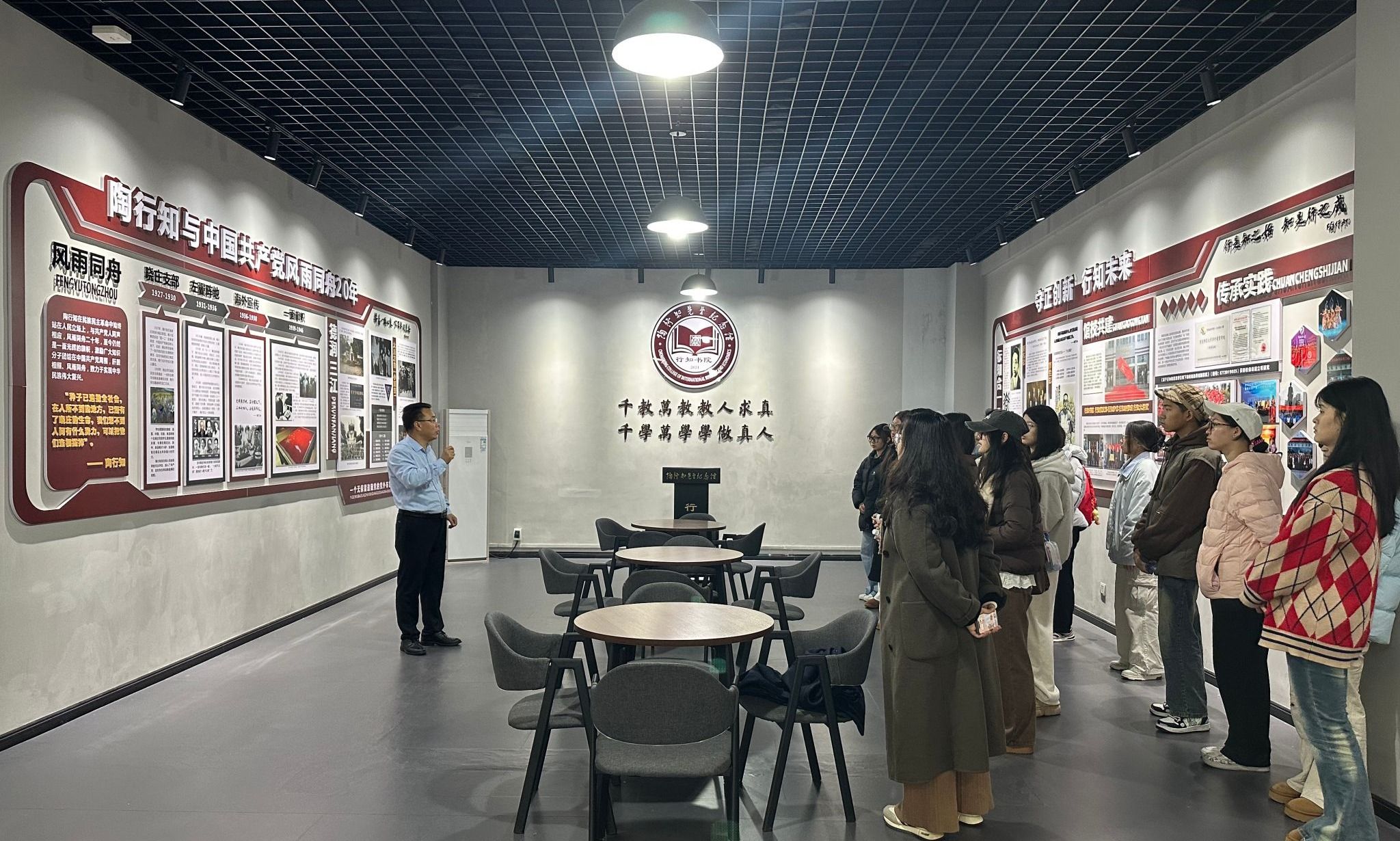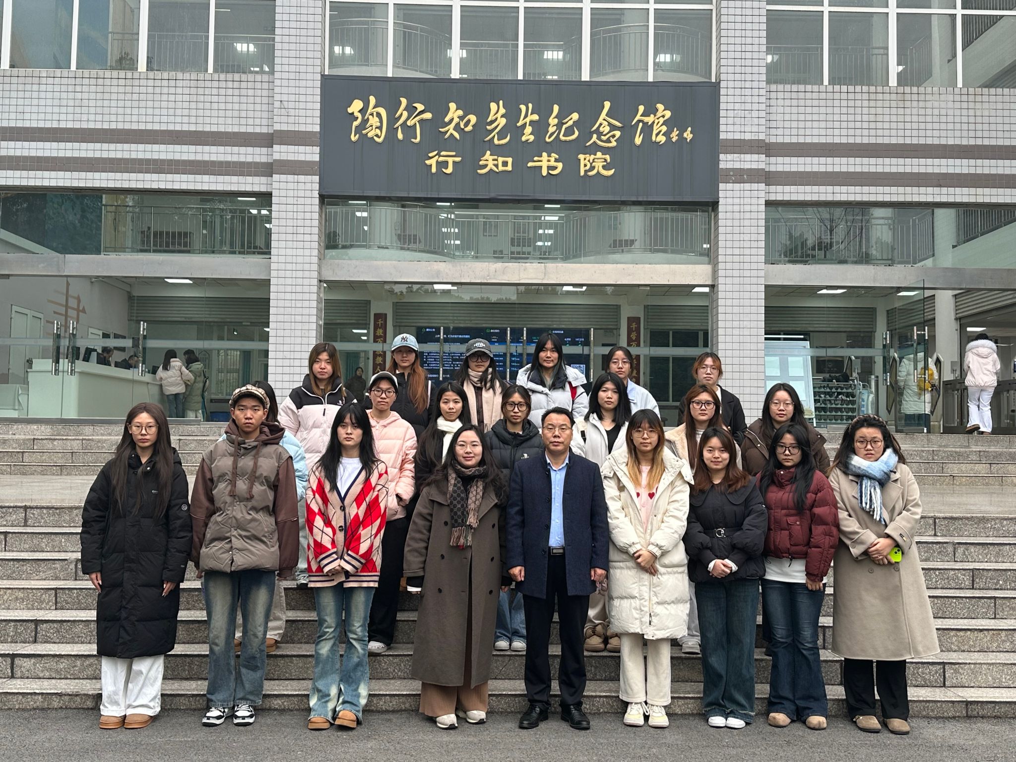 【本网讯】为深入弘扬教育家精神,夯实师范专业人才培养根基,助力师范类专业认证工作提质增效,12月19日,重庆对外经贸学院外语外贸学院办公室主任黄蓉带领2024级、2025级英语专业学生走进陶行知先生纪念馆行知书院,开展沉浸式参观学习活动。行知书院院长张伟东亲自全程为同学们讲解引导,让大家在实地探访中感悟教育初心,汲取育人力量。