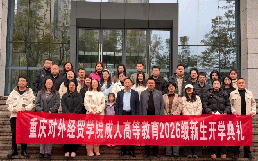 【本网讯】3月7日,重庆对外经贸学院2026级成人高等教育新生开学典礼在A校区圆满举行,继续教育学院相关领导、成人教育办公室全体教师与2026级成教新生共同参与本次典礼。