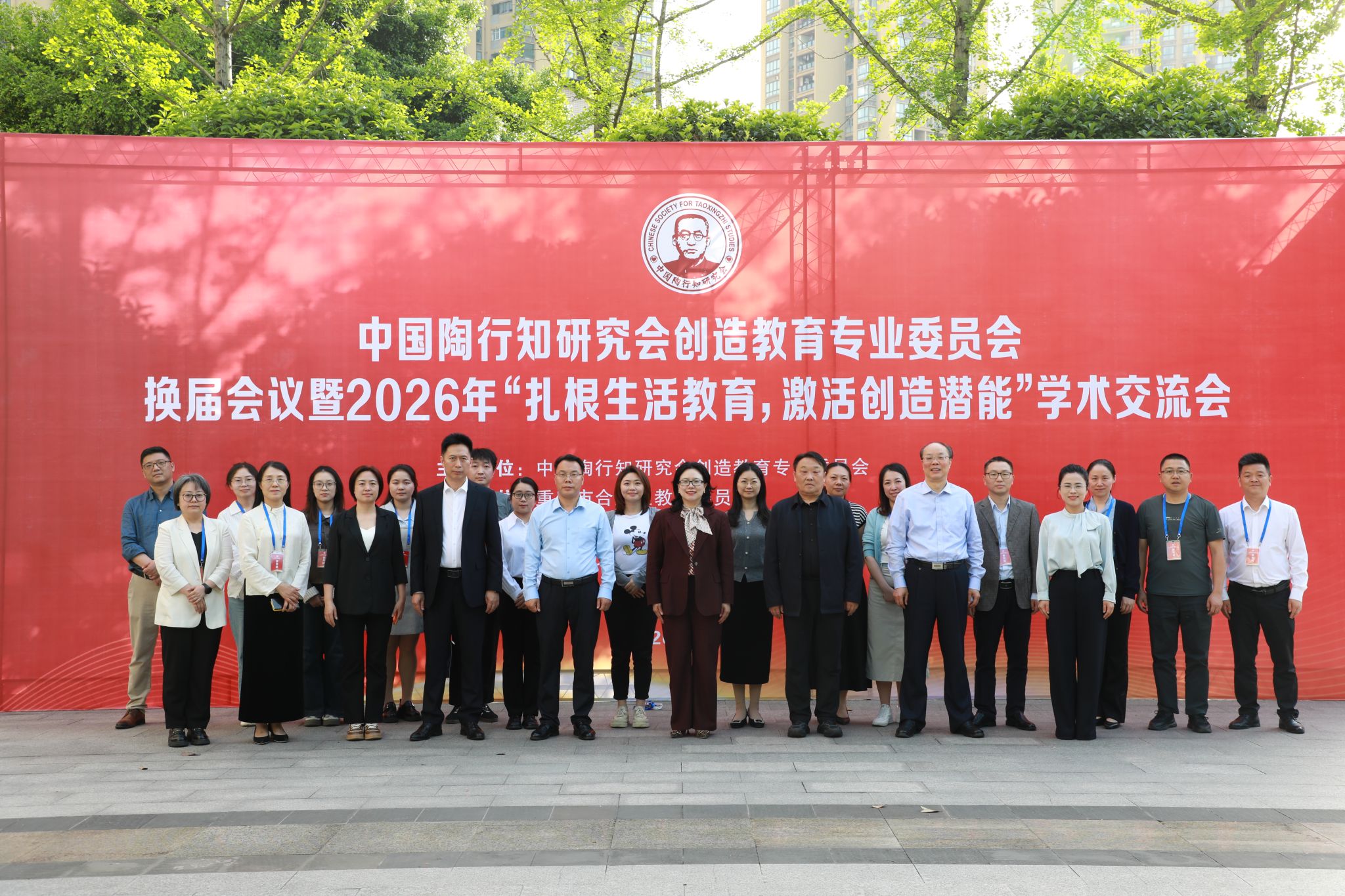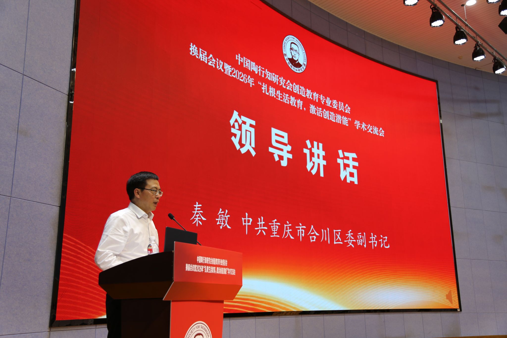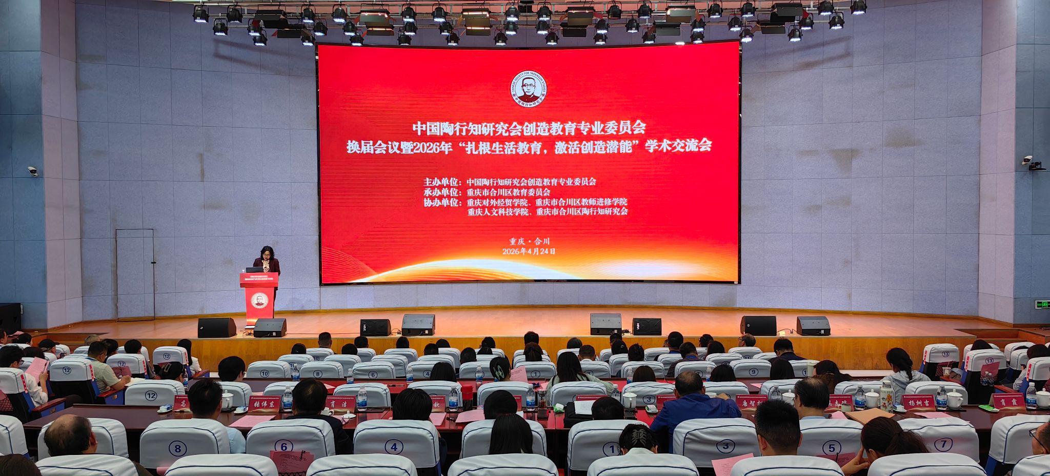 【本网讯】为传承弘扬陶行知生活教育、创造教育核心理念,深耕新时代创造教育实践,持续推进各学段学生创新素养培育落地见效,4月24日,中国陶行知研究会创造教育专业委员会第二届换届会议暨2026年学术交流会在重庆对外经贸学院举行。中国陶行知研究会常务副会长、秘书长陈洛,重庆市陶行知研究会副会长兼秘书长唐智松,中共重庆市合川区委副书记秦敏,合川区人大常委会副主任、党组副书记陈皎,重庆市合川区政府副区长袁晓钦,等领导和嘉宾莅临大会指导。
