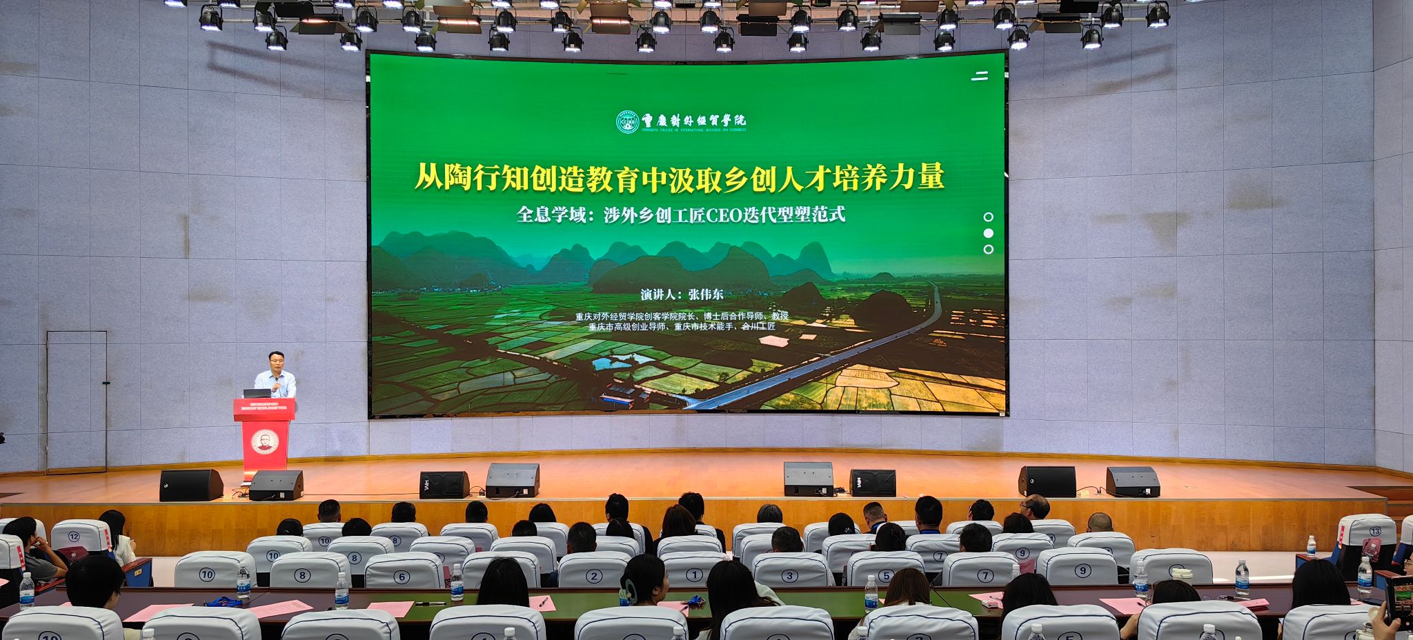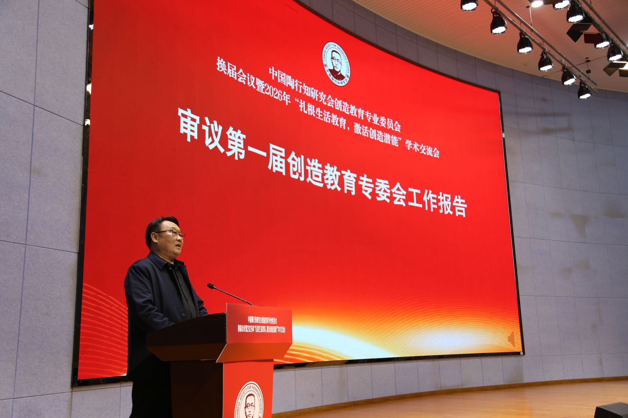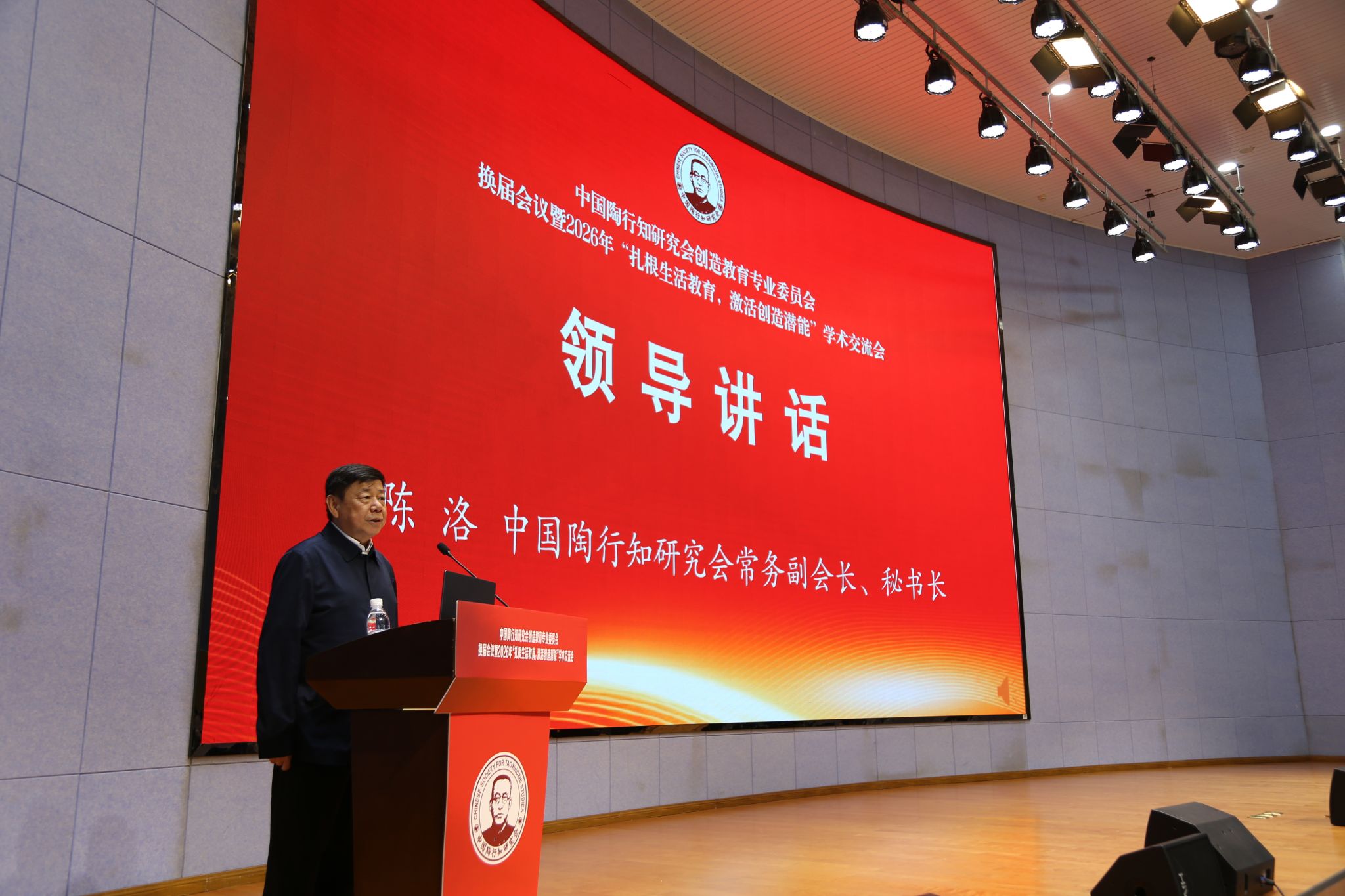 【本网讯】为传承弘扬陶行知生活教育、创造教育核心理念,深耕新时代创造教育实践,持续推进各学段学生创新素养培育落地见效,4月24日,中国陶行知研究会创造教育专业委员会第二届换届会议暨2026年学术交流会在重庆对外经贸学院举行。中国陶行知研究会常务副会长、秘书长陈洛,重庆市陶行知研究会副会长兼秘书长唐智松,中共重庆市合川区委副书记秦敏,合川区人大常委会副主任、党组副书记陈皎,重庆市合川区政府副区长袁晓钦,等领导和嘉宾莅临大会指导。