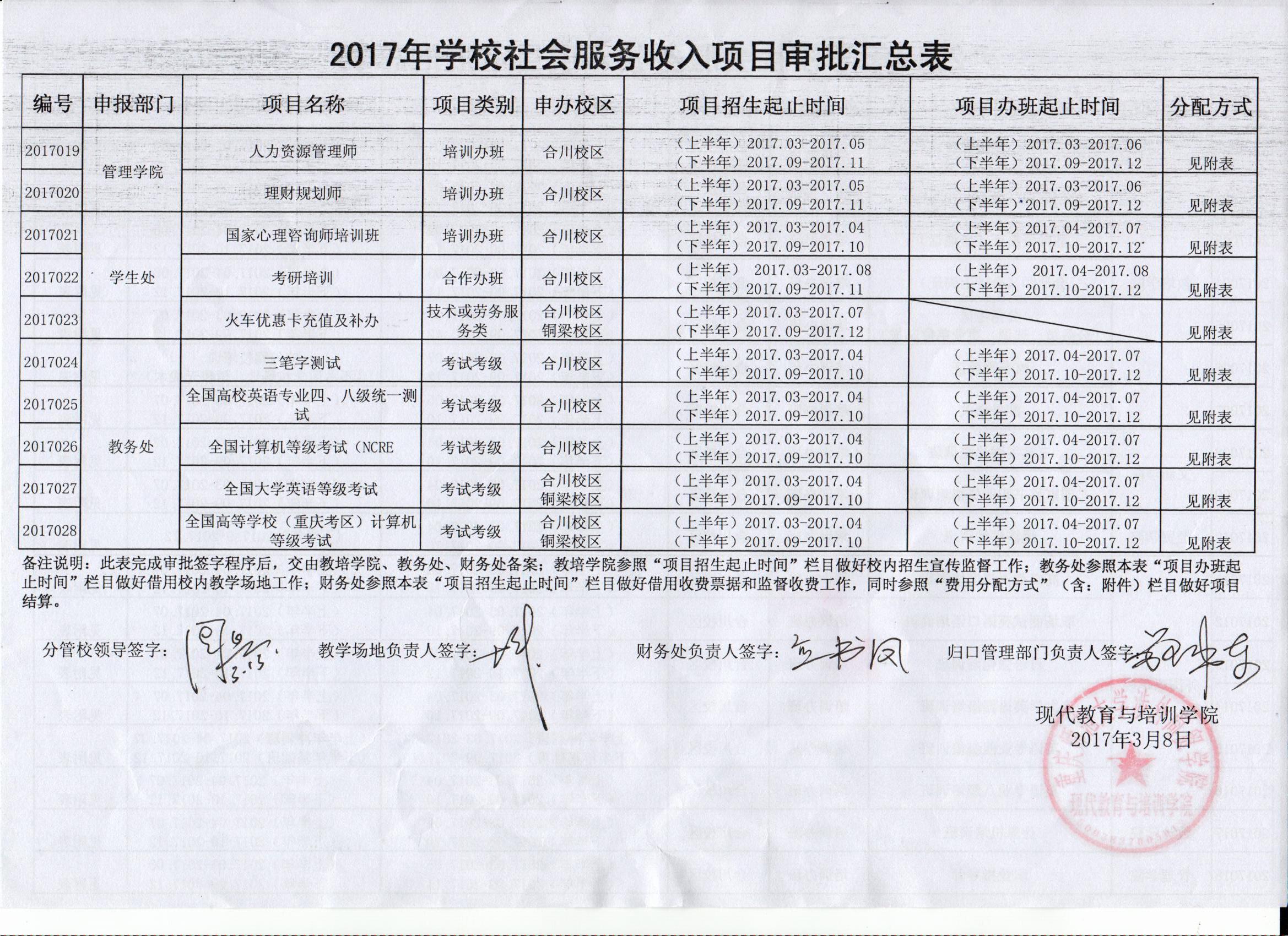 2017年学校学历教育、非学历办班及考试项目经我院、财务处、教务处审批已报分管校领导审核通过立项,可以开展招生宣传工作,提升学生“双证”教育水平,有效推动“应用型”人才培养工作,提高学生就业竞争力。