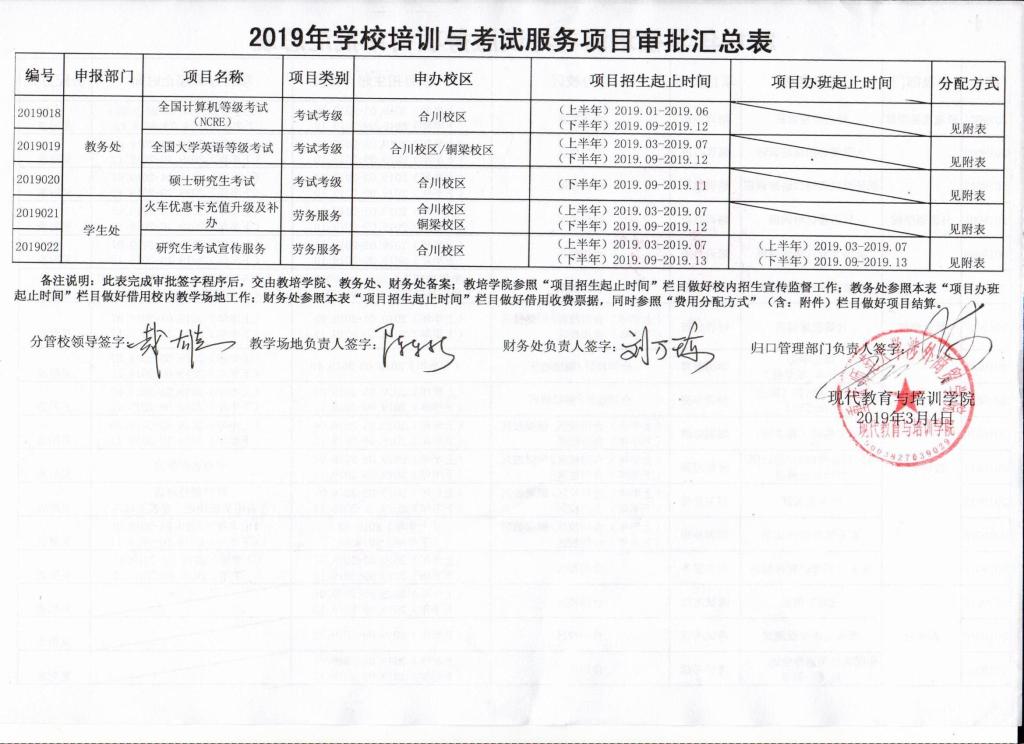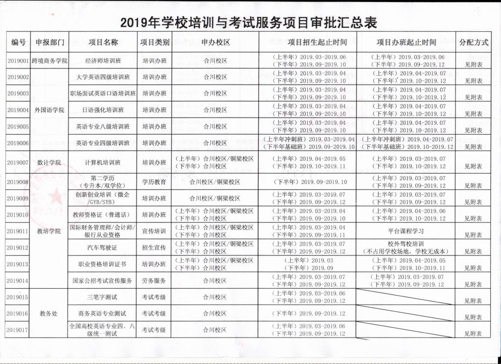 2019年学校学历教育、非学历培训办班及考试项目经我院、财务处、教务处审批已报分管校领导审核通过立项,可以开展招生宣传工作,提升学生“双证”教育水平,有效推动“应用型”人才培养工作,提高学生就业竞争力。