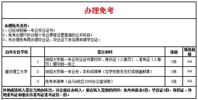 全程线上申办,申报请登录网站:重庆市高等教育自学考试信息管理系统https://zk.cqksy.cn/zkPage/index,具体操作说明点击浏览:https://docs.qq.com/doc/p/187ec8b4d1bfb719ae3b69606ddb6abf248646af?pub=1&dver=2.1.0