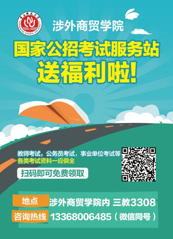 为推进我校提振教风学风计划,推进各专业学生对口参加国家各类公招考试的教育与培训工作,有效提高国家公招考试的录取率与就业率。为提高本校各专业学生参加公招考试学习效率,国家公招考试服务站于期末期间,赠送各类公招考试电子版复习资料,望大家踊跃参加。
