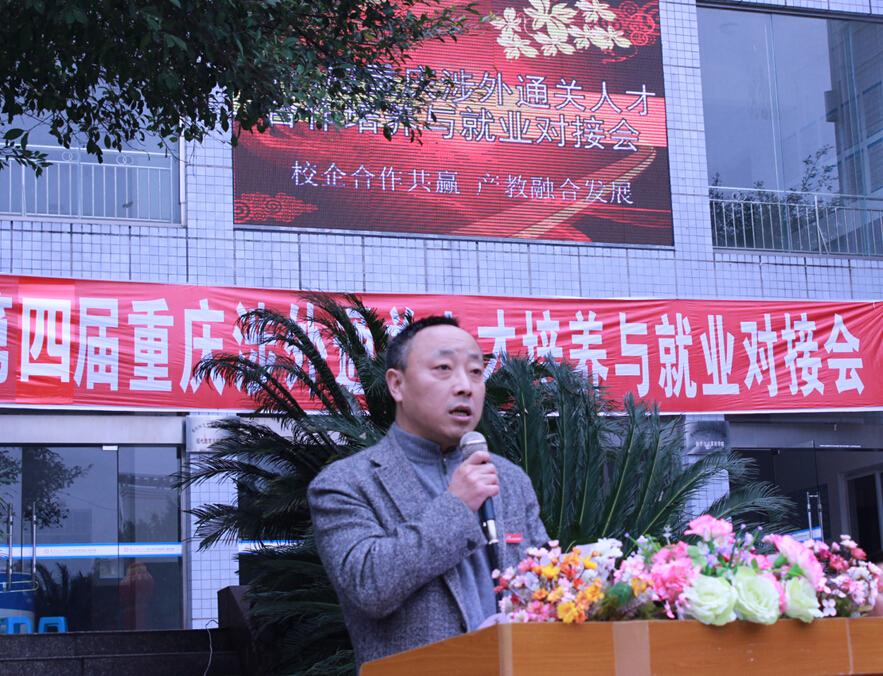 学校肖建国宣布第四届重庆涉外通关人才合作培养与就业对接会开幕