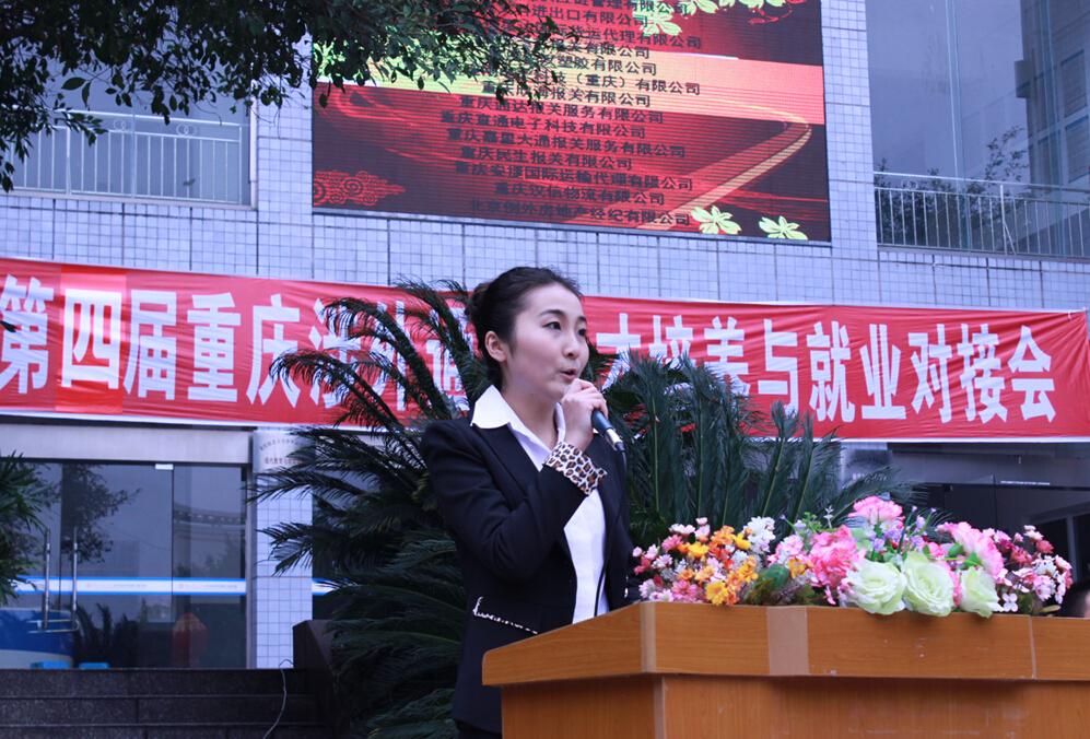 会上,喻院长首先致辞,强调我校把握当前重庆打造对外开放高地的有利契机,以区域产业发展为导向,以企业人才需求为基点,不断创新人才培养方式,积极推进校企合作,实现企业与大学联动办学,加快“应用型”人才培养转型发展。喻院长特别提到我校涉外通关人才培养模式获得了教育部副部长鲁昕同志的高度赞扬,并因此获得了全国创新学习联盟“实践功勋奖”。紧接着,樊会长感谢我校为重庆打造西部开放高地提供强有力的人才支持,不断提高教育教学质量,为社会培养更多优秀人才;同时,樊会长鼓励同学们抓住机遇,勇于向到校招聘企业推荐自己,祝愿各位学子“找到合适的对象,并牵手成功”。随后,涉外通关人才培养班优秀学员吴双彦上台发言,感谢学校为通关班学子搭建的就业平台,将会把自己最好的一面展示给用人单位,找到心仪的工作。最后,肖院长宣布对接会开幕。招聘现场气氛隆重热烈,同学们与企业进行双向选择,实现自己的涉外通关就业梦想。