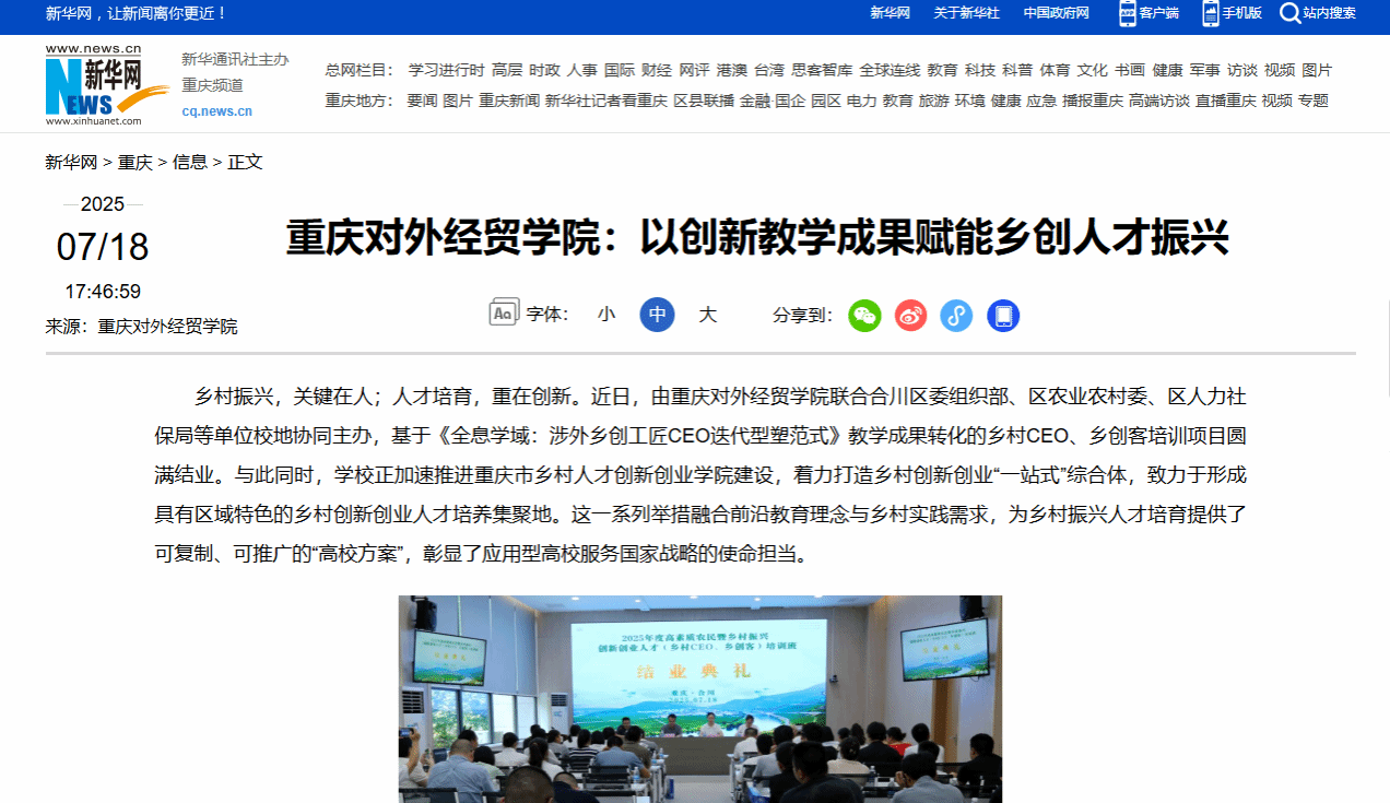 重庆对外经贸学院:以创新教学成果赋能乡创人才振兴