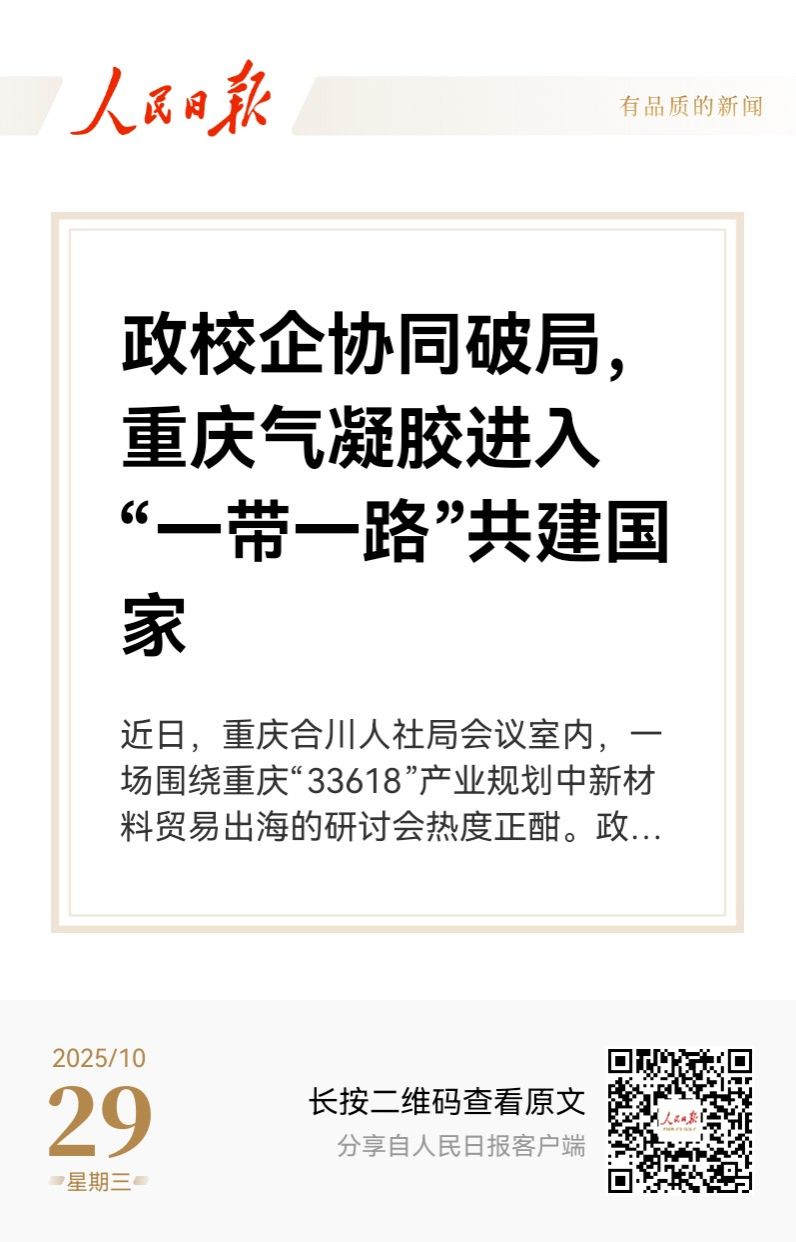 【新闻报道链接】《人民日报》政校企协同破局,重庆气凝胶进入“一带一路”共建国家_人民日报 (peopleapp.com)