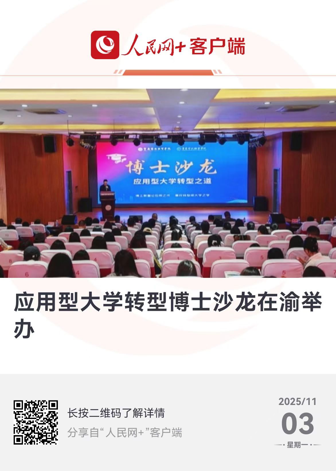 新闻报道链接:应用型大学转型博士沙龙在渝举办 (people.cn)